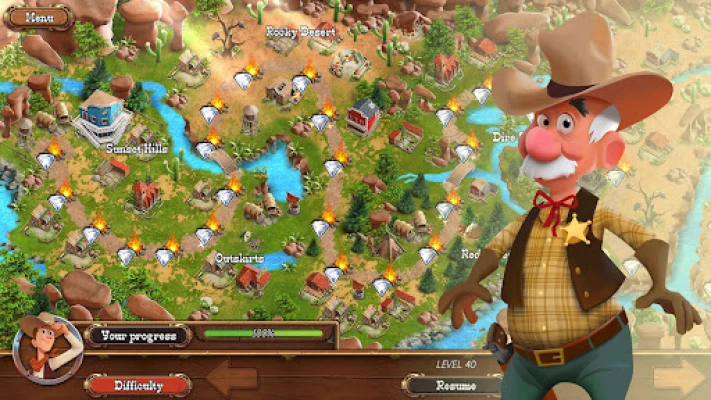 In this fun and colorful time management game you will explore, guide your people, build cities, gather resources and overcome obstacles along the way while enjoying the tale of love and family, friendship and courage! Help Ted and Catherine exploring the Wild West, forge friendships with unique characters and Indian tribes to preserve the Power of Nature.