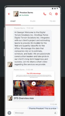 This app allows us to easily integrate with your project and estimating teams to provide 3D models for the field and quantity takeoffs for the office. Access your project details with us at your desk or on the go with face-to-face video meetings, instant text messaging, screen sharing, file storage, time stamped conversation, document annotation, and e-signature, and more.