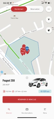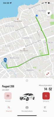 Download the app for free on your phone, create your profile in 3 simple steps, and view available rental vehicles on the interactive map. You can unlock and start your rental car directly from your phone. Rental rates start at 990 XPF / hour.