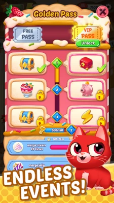 - Merge cookies, cakes, jellies, and ice cream to create endless merge combinations!