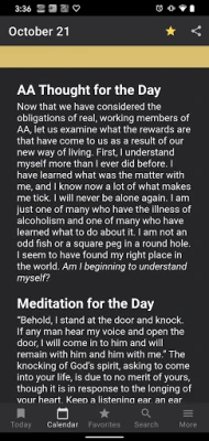Part of the Sanskrit proverb quoted in the app, “For yesterday is but a dream, and tomorrow is only a vision,” has become one of the basic building blocks for a life of sobriety. In addition to a thought, meditation, and prayer for each day of the year, this app also contains the Serenity Prayer, the Twelve Steps, and the Twelve Traditions of Alcoholics Anonymous. Twenty-Four Hours a Day is a simple yet effective aid to help anyone relate the Twelve Steps to everyday life and will help those in AA or NA find the power to stay sober.