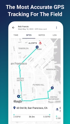 * See where your crew is located in real time on both time cards and a map view.
