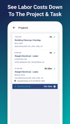 * Labor costs are calculated on every clock out and updated on job & cost code reports.
